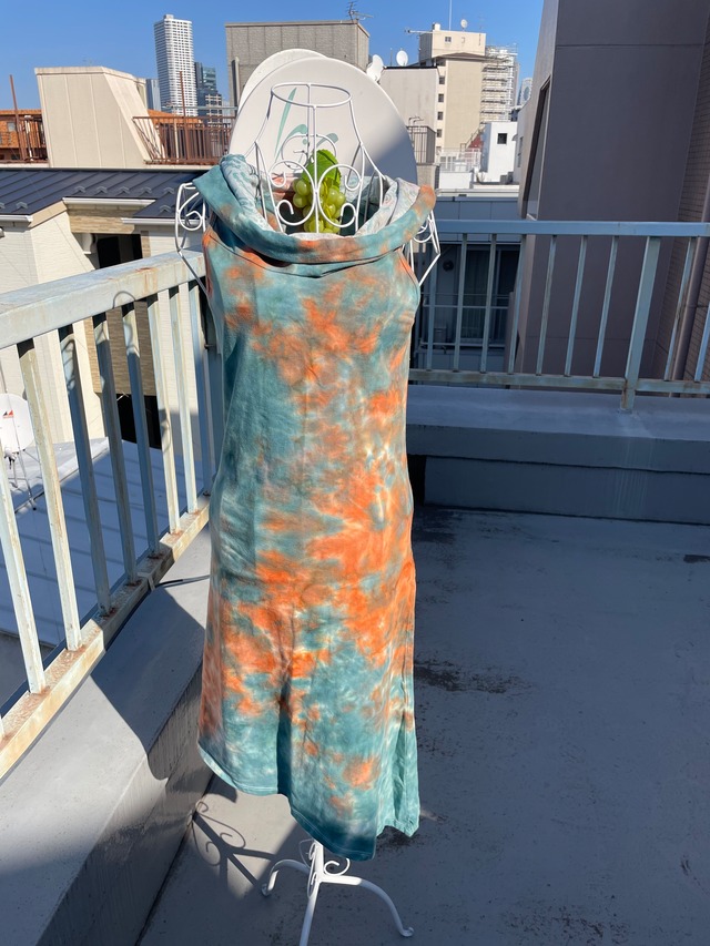 大きめのフードが着いたワンピースです。こちらのワンピースはTrishuLさんのオリジナル商品です。アシンメトリーの丈に大きなフードがとってもかわいいです。フードの中はバーンアウト生地という透け感のある生地を使っています。 こちらはアイスダイという氷を使ったタイダイ染めをしています。 ※着用画像はイメージです。こちらの商品の色違いを着ているので、着丈などの参考にしてください。 モデル 165cm サイズ フリーサイズ 平置き実寸サイズ 総丈 104cm 胸囲 37cm 肩幅 33cm ※採寸の若干の誤差はご了承ください。 cotton 95% Lycra 5% 全ての商品は未使用の新品を手染めしてます。 染める工程上、お洗濯はしています。 ご了承ください。 染色をしていることにより、サイズは少し縮んでいます。 全てのサイズを測り、実寸サイズとして記載しておりますのでご参照ください。 手染めタイダイについて ⭐︎ひとつひとつ手染めしてます。最初の2〜3回は白物と分けてお洗濯ください。 ⭐︎お洗濯を繰り返すうちに少しずつ色褪せてきます。それが染め物のアジとなりますので、変化をお楽しみください。 ⭐︎写真は照明の関係等で実際のイメージと多少違ってくる事がございます。ご了承ください。 ⭐︎オーダーもお受けできます!お気軽にご質問ください。ただ、全く同じものは作れません。2つとして同じものがないのがタイダイの良さです。世界にひとつだけのあなただけの物を作ります♡ ご理解の程、何卒よろしくお願い致します。