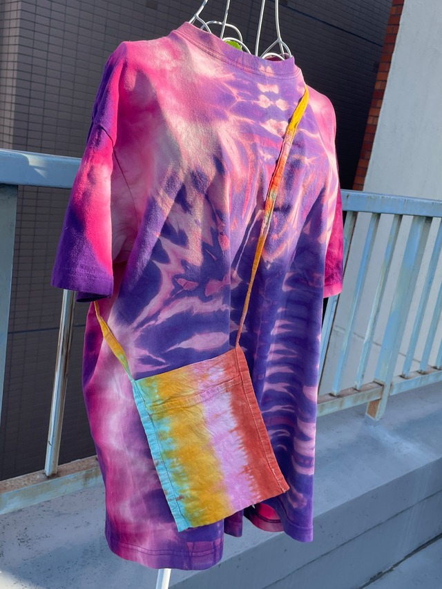 前と後ろに物が入れられてとっても便利!小銭や携帯などを入れて使ってください。Let's 手ぶらstyle⭐︎ サイズ 縦20cm 横15cm マチなし 持ち手 110cm ※採寸の若干の誤差はご了承ください。 全ての商品は未使用の新品を手染めしてます。 染める工程上、お洗濯はしています。 ご了承ください。 染色をしていることにより、サイズは少し縮んでいます。 全てのサイズを測り、実寸サイズとして記載しておりますのでご参照ください。 手染めタイダイについて ⭐︎ひとつひとつ手染めしてます。最初の2〜3回は白物と分けてお洗濯ください。 ⭐︎お洗濯を繰り返すうちに少しずつ色褪せてきます。それが染め物のアジとなりますので、変化をお楽しみください。 ⭐︎写真は照明の関係等で実際のイメージと多少違ってくる事がございます。ご了承ください。 ⭐︎オーダーもお受けできます!お気軽にご質問ください。ただ、全く同じものは作れません。2つとして同じものがないのがタイダイの良さです。世界にひとつだけのあなただけの物を作ります♡ ご理解の程、何卒よろしくお願い致します。