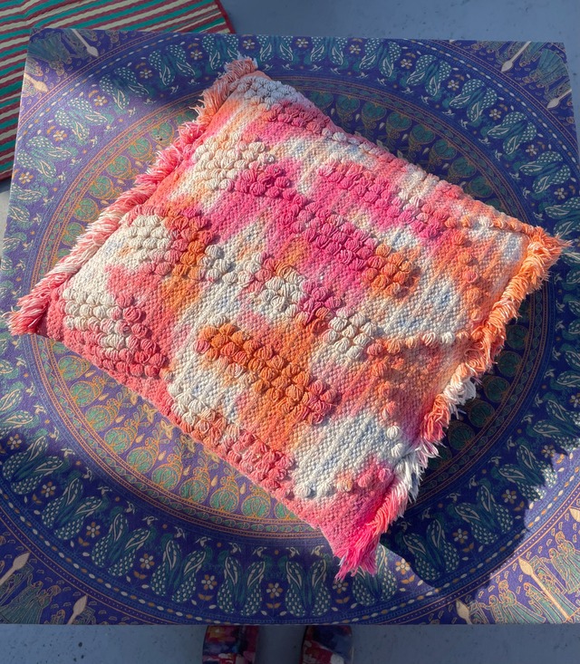 大きなお花が咲いたような華やかなクッションカバーです。ベロアっぽい素材で肌触りが気持ちいいです。 ※ カバーのみの販売となります。中身は45×45サイズがオススメです。 平置き実寸サイズ 48×48cm (45×45サイズのクッションを入れて撮影しています。) ※採寸の若干の誤差はご了承ください。 全ての商品は未使用の新品を手染めしてます。 染める工程上、お洗濯はしています。 ご了承ください。 染色をしていることにより、サイズは少し縮んでいます。 全てのサイズを測り、実寸サイズとして記載しておりますのでご参照ください。 手染めタイダイについて ⭐︎ひとつひとつ手染めしてます。最初の2〜3回は白物と分けてお洗濯ください。 ⭐︎お洗濯を繰り返すうちに少しずつ色褪せてきます。それが染め物のアジとなりますので、変化をお楽しみください。 ⭐︎写真は照明の関係等で実際のイメージと多少違ってくる事がございます。ご了承ください。 ⭐︎オーダーもお受けできます!お気軽にご質問ください。ただ、全く同じものは作れません。2つとして同じものがないのがタイダイの良さです。世界にひとつだけのあなただけの物を作ります♡ ご理解の程、何卒よろしくお願い致します。