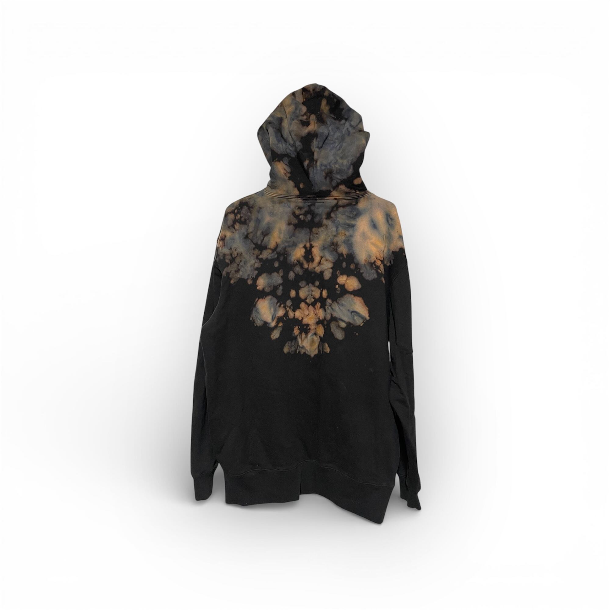 黒のパーカーを上部分のみブリーチしてから染色しました。派手すぎずカッコいい仕上がりです。Brack dawnスエットとセットアップ可能です。