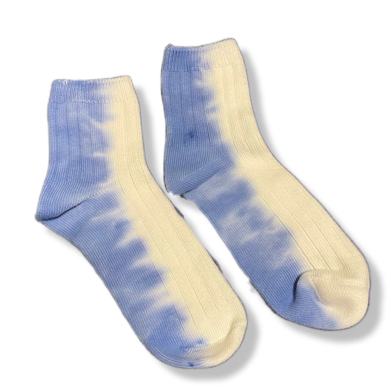 リブソックスの後ろと底だけをネイビーで染めました。前から見ると白い靴下?だけど横から見ると…遊び心がつまった一足です。