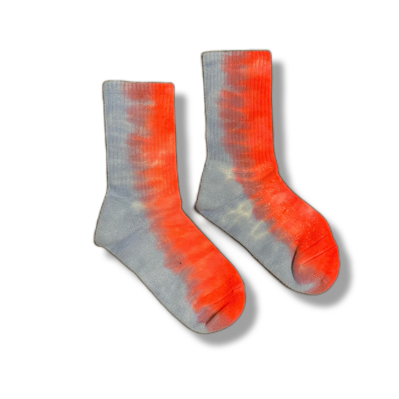 少し長めのソックスを赤とネイビーで染めました。ブーツからチラ見せしてもカッコいい。