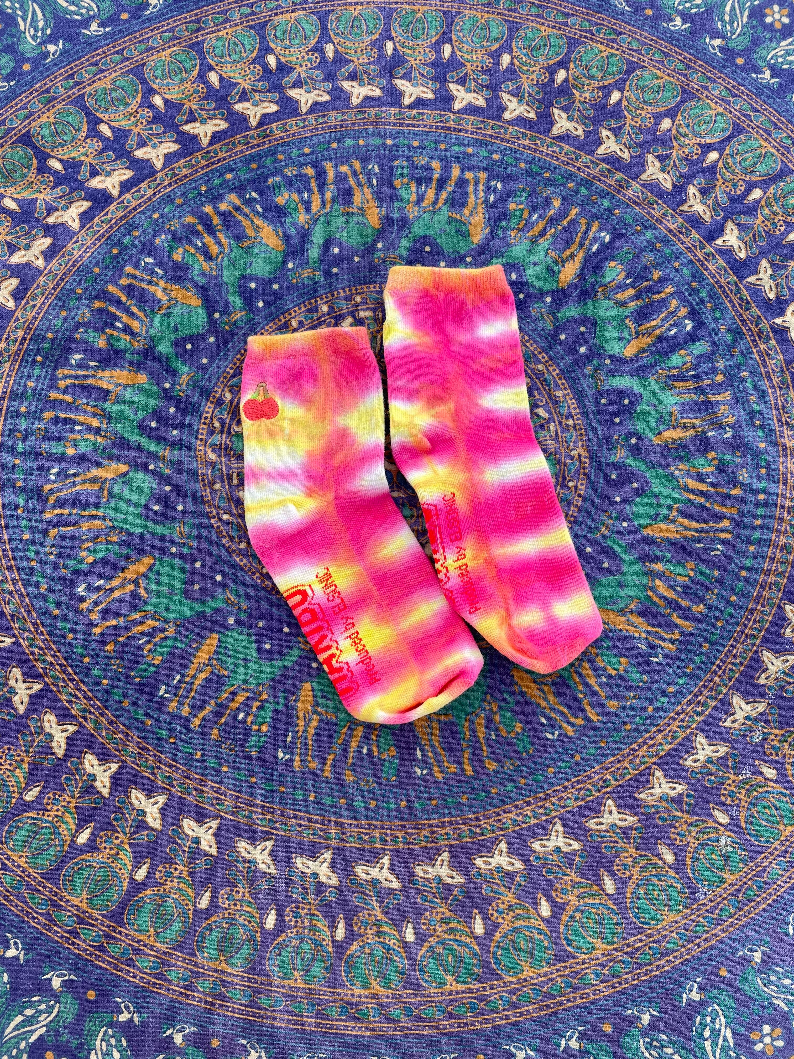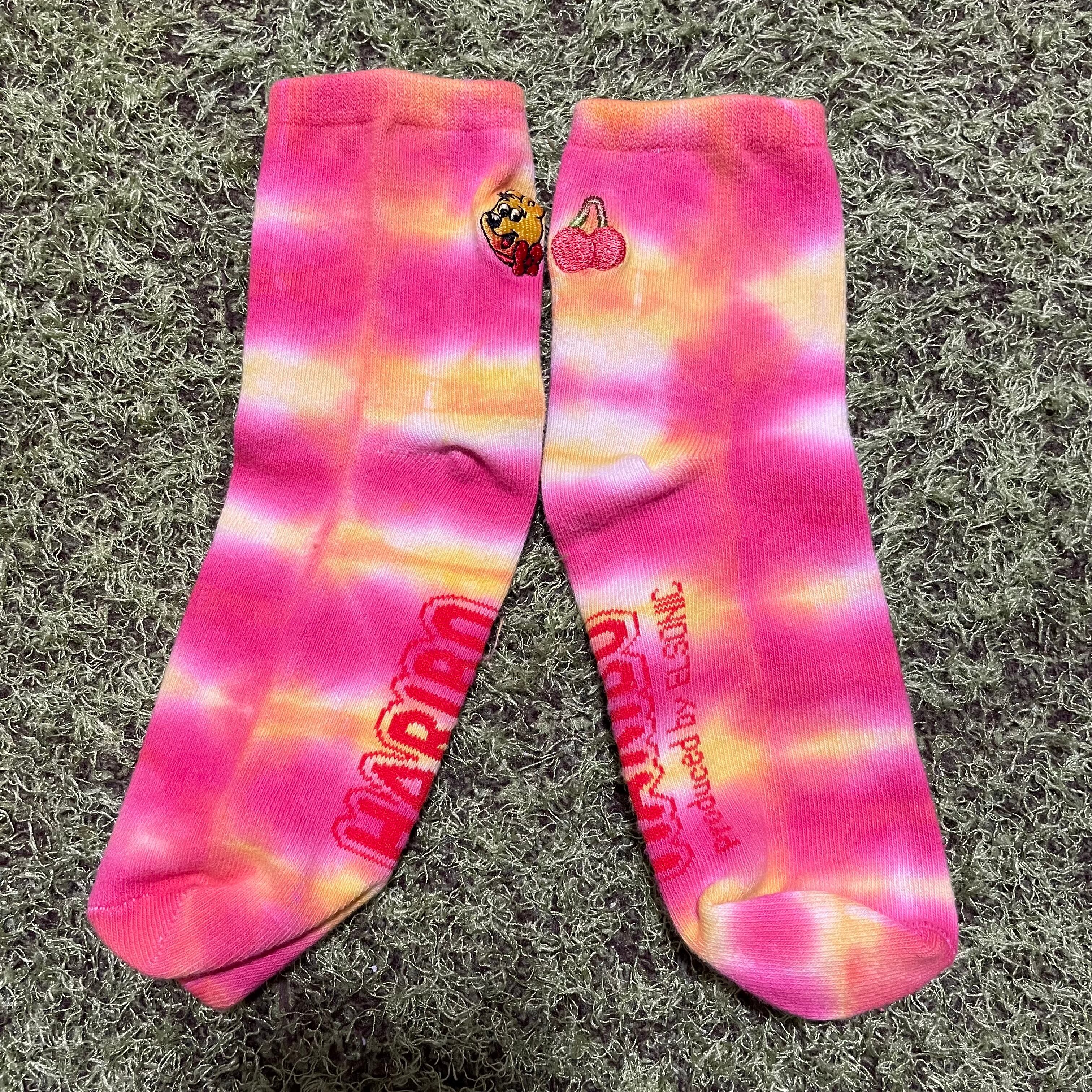 バックにHARIBOとさくらんぼの刺繍がかわいい靴下です。