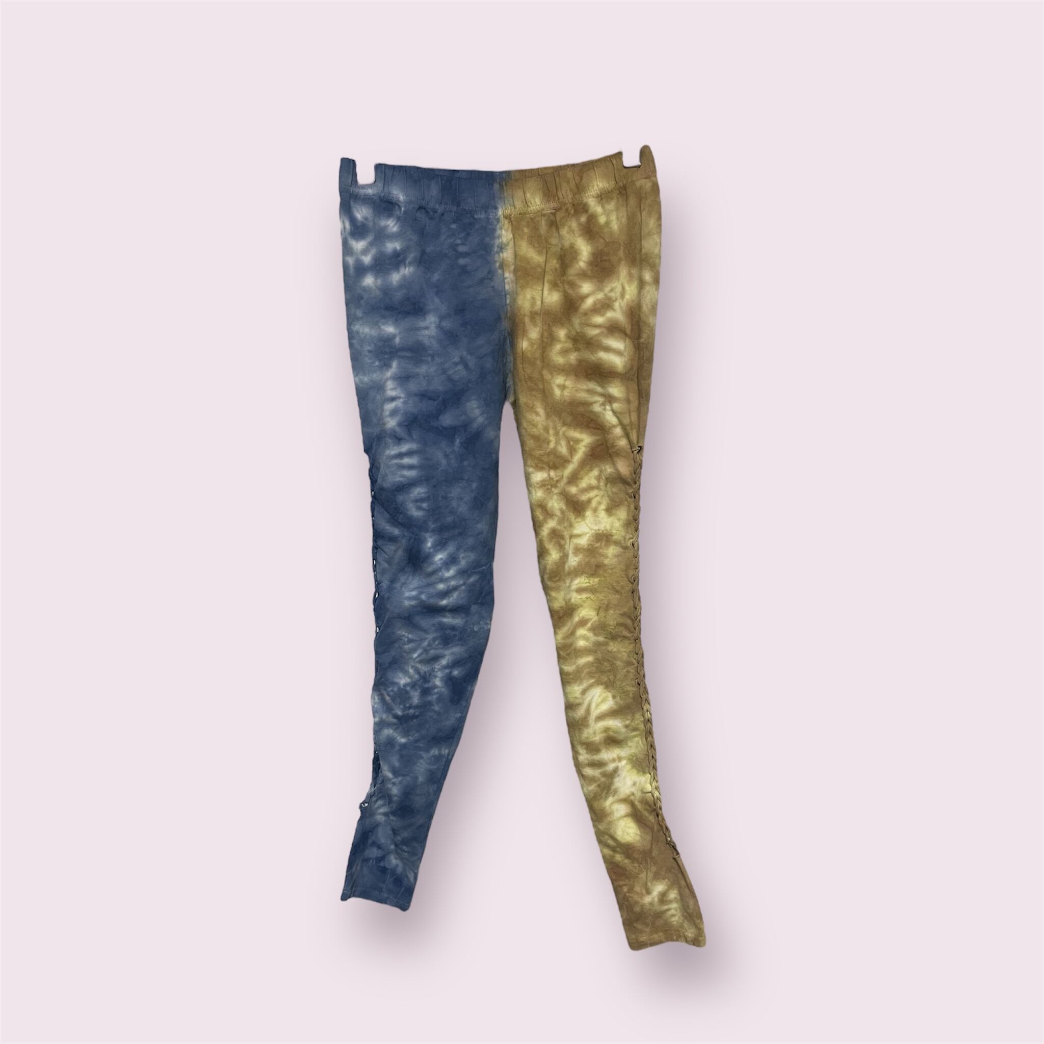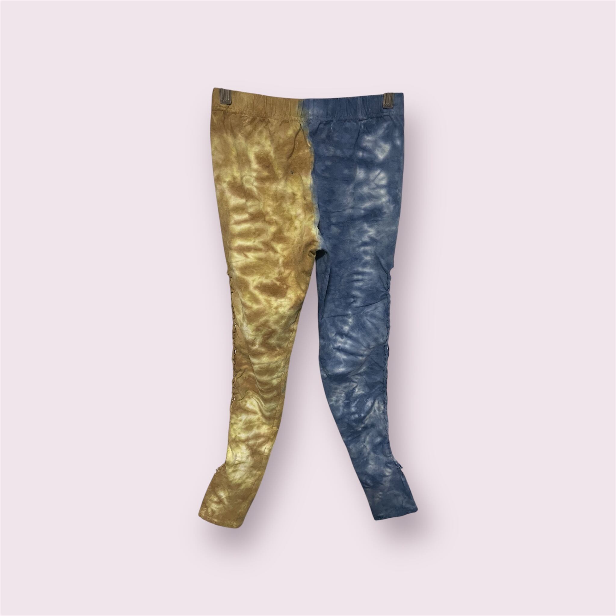 10部丈のサイド編み上げレギンスです。履くと右足がブルー、左足が茶系カラーになります。eneがおススメする左右色違いレギンス!履くとめちゃくちゃかわいいです♡